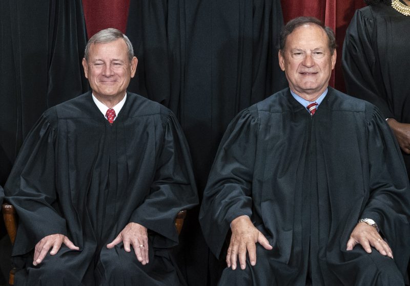 Two Democratic senators are calling on Chief Justice John G. Roberts Jr. to take immediate steps to ensure that Justice Samuel A. Alito Jr. does not participate in a pair of Supreme Court cases related to the 2020 presidential election and the Jan. 6, 2021, attack on the U.S. Capitol.