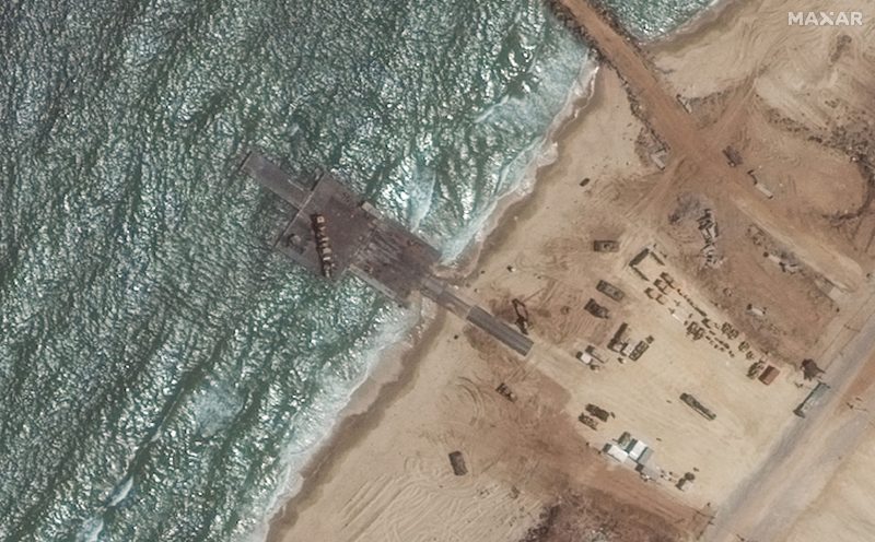 Deliveries over the pier were suspended Tuesday after it broke apart in rough water, with swells reaching upward of five feet, according to sea state trackers. It marked at least the third significant setback in a week; four U.S. Army vessels ran aground on Saturday, and a U.S. soldier was critically injured in an incident last week that the Pentagon has declined to detail.
