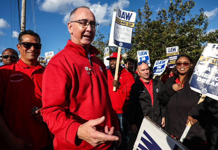 United Auto Workers President Shawn Fain is pushing to expand the union in states with tougher terrain for labor groups.John J. Kim / Chicago Tribune via Getty Images fileIn a news conference Tuesday, Fain appealed to members who question the UAW’s Southern strategy and the use of their dues to support it, saying, “This ain’t charity, this is power.”