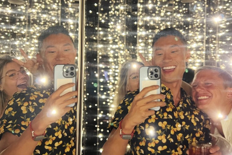 Benjamin Xiang took a Virgin Voyages cruise last year on a ship with an infinity mirror room.Benji XiangTaking advantage of a Virgin Voyages promotion that let him use credit card points to cover the $2,500 bill, Xiang booked a weeklong, all-inclusive, adults-only cruise from Barcelona, with stops at Mallorca, Ibiza and along the French Riviera.“I invited my best friend, we prepaid a $600 bar tab, and we were like, ‘We’ll just hang by the pool, read a book or something,’” said Xiang, 35. “Turned out we partied every single night and had a blast.”